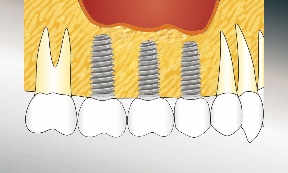 Bei ausreichender Knochenstärke können Implantate als Brückenpfeiler bis in den Molarbereich gesetzt werden. Bei weniger Knochen enden die Implantatpfeiler weiter vorn. Eine "Extensionsbrücke" ist die Alternative.