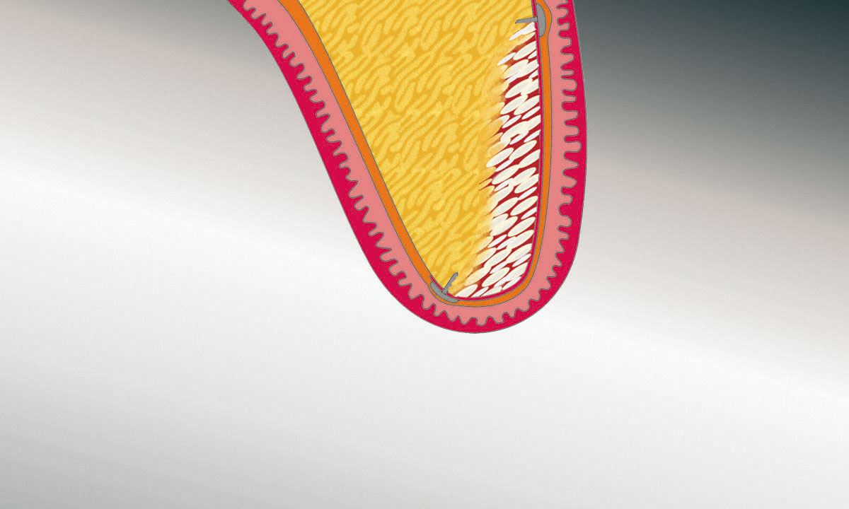 Allerdings lassen sich Defekte mit Knochenersatzmaterial abdecken. Dies wird mit Membranen fixiert. Die Einheilungszeit dauert ca. 6 Monate. Danach können die Zahnimplantate eingeschraubt werden.