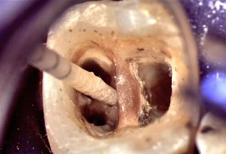 Nur wenn das Wurzelkanalsystem komplett aufgefunden und gereinigt wird, hat eine Wurzelkanalfüllung eine gute Langzeitprognose.