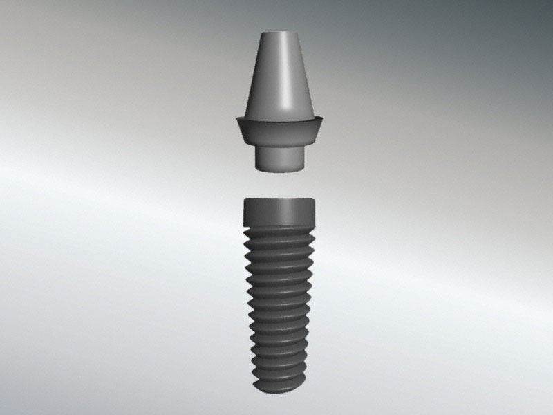 Der im Kiefer implantierte Teil ist schraubenförmig oder zylindrisch geformt. Der zweite Teil - der Implantatpfosten - wird später eingeschraubt und bietet dem Zahnersatz einen festen Halt.